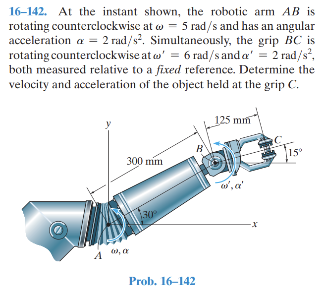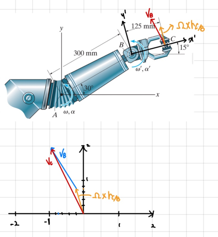 이 문제에서 회전좌표계를 저처럼 B점을 원점으로 15도 회전한 상태로 정의하면 고정좌표계와 회전좌표계의 단위벡터가 다르니 유의하셔야합니다.