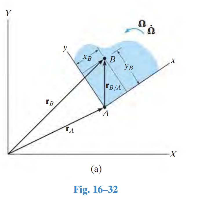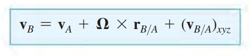 이때 $\dot{x_B}i + \dot{y_b}j$는 이동하는 A점에서 본 B의 속도로 $(V_{B/A})_{xyz}$이다.