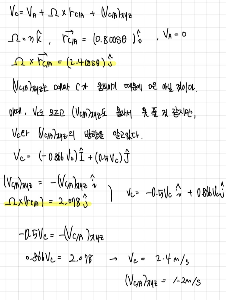 문제3(상대속도해석, 회전좌표계를 이용한 해석 모두 가능한 문제, 두 개다 해보셔도 좋을 거 같네요)