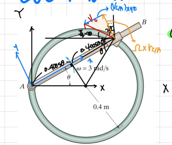 점C의 속도를 rodAB에 수직하게 한 것은 아니겠죠? 속도는 경로의 접선방향입니다!