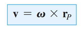 병진운동은 질점할 때랑 똑같고 회전 할 때 강체 내의 질점 P의 속도는 각속도와 P까지의 위치벡터의 외적을 통해 구할 수 있습니다. 그리고 속도식을 미분하면 가속도 식을 얻을 수 있습니다.
