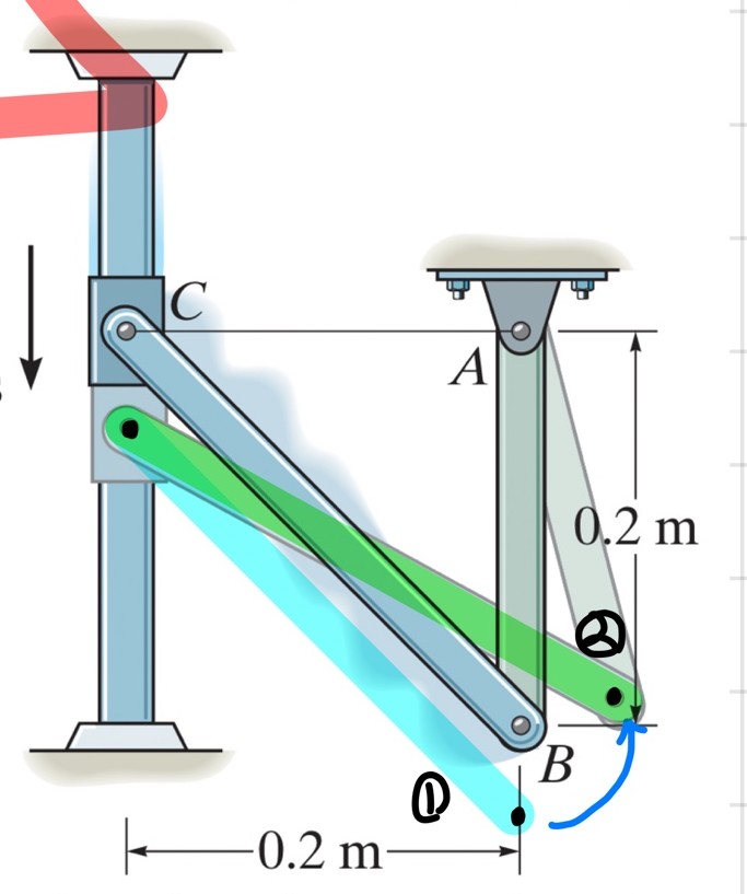 BC의 운동을 파란색위치로 병진이동한 후, C점을 중심으로 회전운동을 해서 최종위치인 초록색위치로 가는 것으로 해석할 수 있습니다.