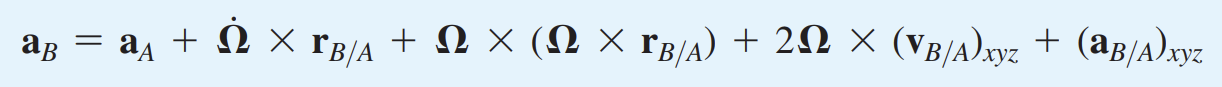여기서 중요한 것은 상대운동해석을 하기위해 설정한 좌표계가 회전함으로써 $\Omega\;\times A$ term을 만들었다는 것이 중요합니다.