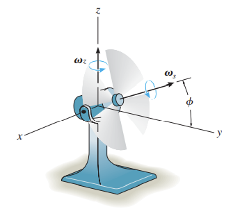 3차원 강체 운동학 문제에서는 여러 축으로 회전을 하게 됩니다. 예를 들어 위에 나온 선풍기가 있겠습니다.