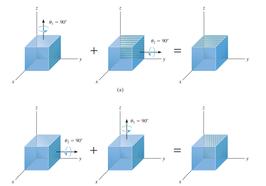 3차원에서 회전을 할 때 회전의 순서도 중요합니다. 다음 그림을 봅시다.